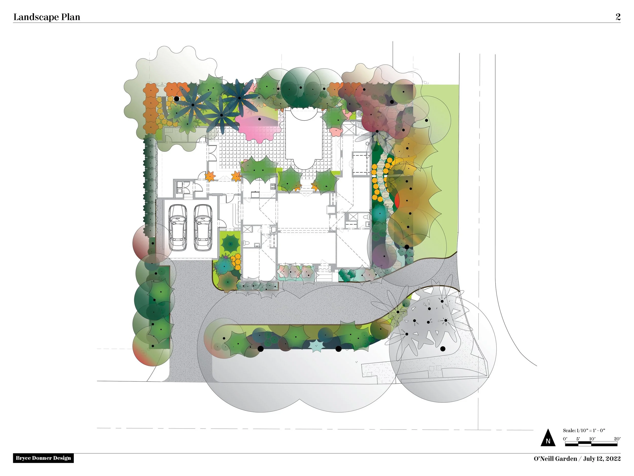 Garden Design for a single family residence on Brighton Place in Coconut Grove, Florida. Plantings emphasized edible fruit trees and layered tropical foliage.